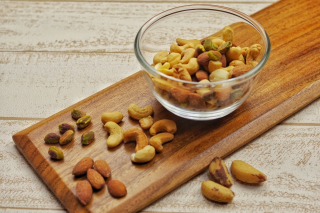 アーモンドなどの種実、魚介類、緑黄色野菜、油脂などに多く含まれるビタミンEは、細胞膜に多く存在しています。強い抗酸化作用を持っているため、過酸化脂質の生成を防ぎ、細胞の老化防止に働くほか、毛細血管を広げて血行を良くする働きも期待できます。