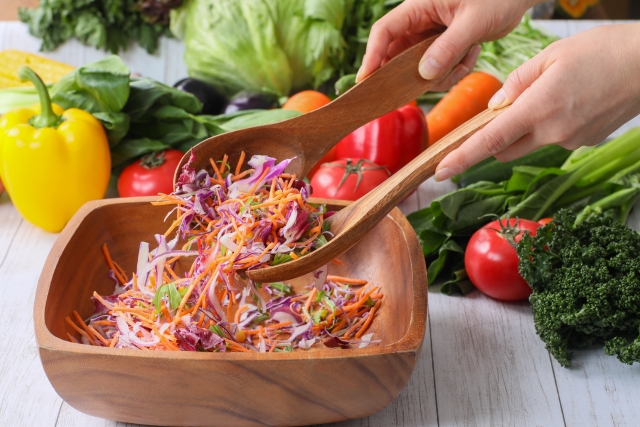 ビタミンA・D・E・Kの脂溶性ビタミンは油脂に溶け込ませて吸収する必要があります。油脂は油だけでなく、ゴマやアーモンド、油揚げやチーズなど食材の油脂分を利用する事も出来ます。また、一つの料理の中だけでなく、揚げ物などの付け合わせとしても同じ効果を得る事ができます。